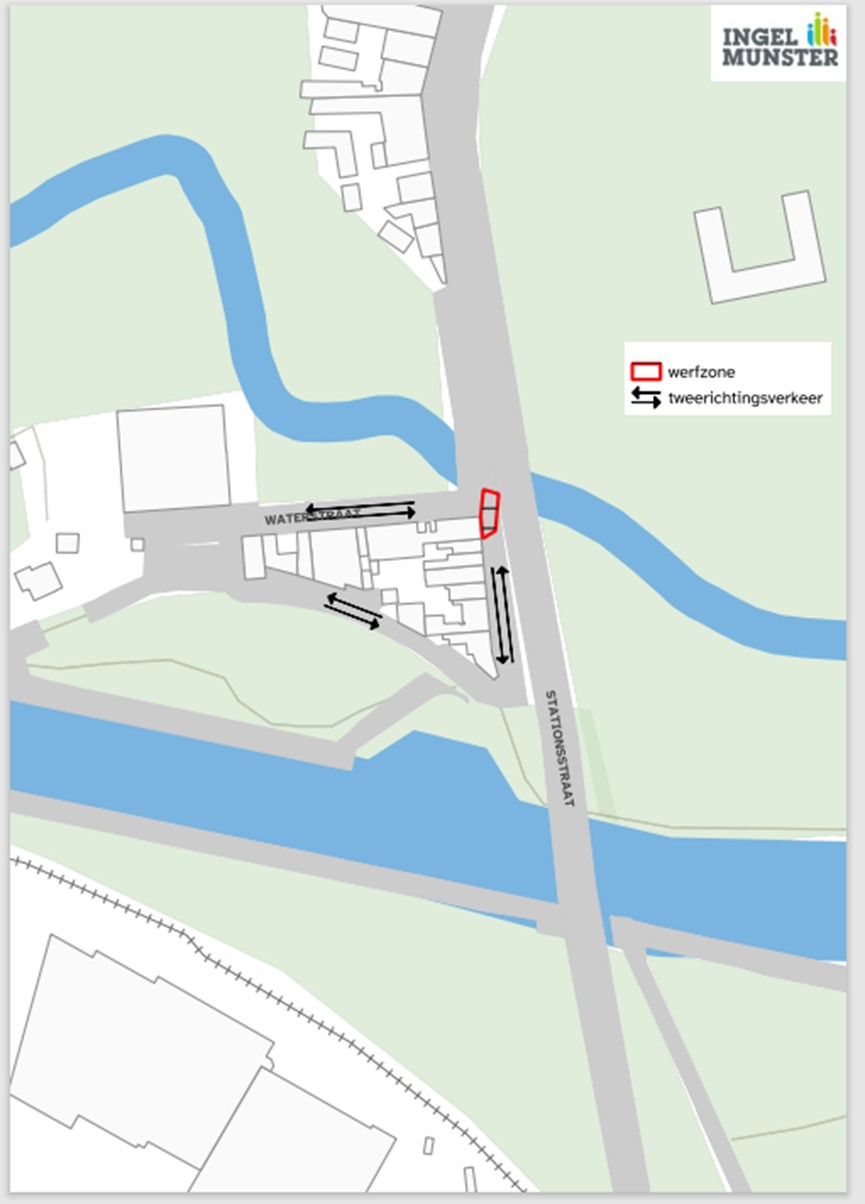 - Tijdens de werken blijven de woningen in de Stationsstraat (nummers 38 tot en met 58) bereikbaar via de weg tussen Waterstraat 13 en de parking. Het éénrichtingsverkeer wordt daar tijdelijk opgeheven.